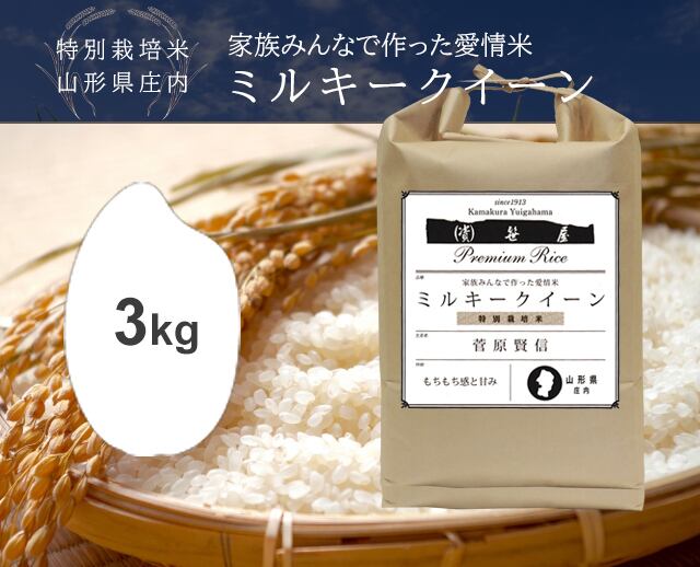 3kg 庄内ミルキークイーン(山形・特別栽培米)