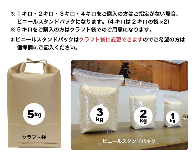 ※1キロ〜4キロ をご購入の方はビニールスタンドパック*4キロは(2キロの袋×2)